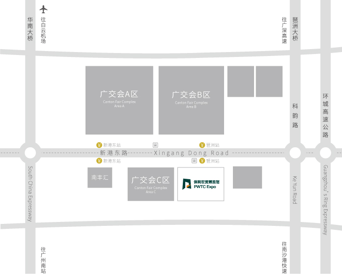 保利世贸博览馆坐落于广州海珠区琶洲会展商圈核心地带。地铁8号线可直达展厅入口,其“琶洲站”与博览馆无缝接驳。路面交通网络快捷方便,东临环城高速,西接华南快速干线,北接新港东路,南接凤浦中路,还有多条公交线路交汇于此,可快速到达广州火车站、广州东站、广州南站、天河客运站和白云国际机场。